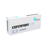 Действующее вещество: хлоропирамина гидрохлорид 25 мг.