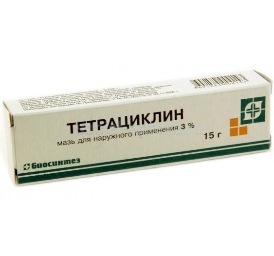Действующее вещество: тетрациклина гидрохлорид - 3,226 г.Вспомогательные вещества: ланолин (ланолин безводный), церезин, натрия дисульфит (натрия пиросульфит), вазелин.