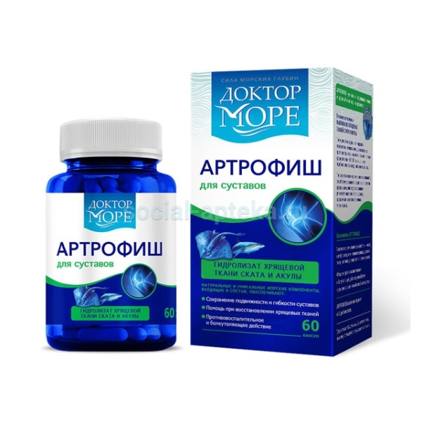 Натуральный морской комплекс из хрящевой ткани морских организмов. Содержит гидролизат хрящевых тканей ската и акулы, кальмара, лосося.