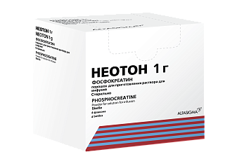 ТОЛЬКО ВНУТРИВЕННО (капельно или в виде быстрой инфузии). Острый инфаркт миокарда. 1 сутки: 2-4 г препарата, разведенного в 50 мл воды для инъекций, в виде в/в быстрой инфузии с последующей в/в инфузией 8-16 г в 200 мл 5% раствора декстрозы (глюкозы) в течение 2 ч. 2 сутки: 2-4 г в 50 мл воды для инъекций в/в капельно (длительность инфузии не менее 30 минут) 2 раза/сут. 3 сутки: 2 г в 50 мл воды для инъекций в/в капельно (длительность инфузии не менее 30 минут) 2 раза/сут. При необходимости курс инфузий по 2 г препарата 2 раза/сут. можно проводить в течение 6 дней. Хроническая сердечная недостаточность. В зависимости от состояния пациента можно начать лечение «ударными» дозами по 5-10 г препарата в 200 мл 5% раствора декстрозы (глюкозы) в/в капельно со скоростью 4-5 г/ч в течение 3-5 дней, а затем перейти на в/в капельное введение (длительность инфузии не менее 30 минут) 12 г препарата, разведенного в 50 мл воды для инъекций, 2 раза/сут. в течение 2-6 недель или сразу начать в/в капельное введение поддерживающих доз препарата Неотон (1-2 г в 50 мл воды для инъекций 2 раза/сут. в течение 2-6 недель). Интраоперационная ишемия миокарда. Рекомендуется курс в/в капельных инфузий длительностью не менее 30 минут по 2 г препарата в 50 мл воды для инъекций 2 раза/сут. в течение 3-5 дней, предшествующих хирургическому вмешательству, и в течение 1-2 дней после него. Во время хирургического вмешательства препарат Неотон добавляют в состав обычного кардиоплегического раствора в концентрации 10 ммоль/л или 2,5 г/л непосредственно перед введением. Интраоперационная ишемия нижних конечностей. 2-4 г препарата Неотон в 50 мл воды для инъекций в виде в/в быстрой инфузии до хирургического вмешательства с последующим в/в капельным введением 8-10 г препарата в 200 мл 5% раствора 4 декстрозы (глюкозы) со скоростью 4-5 г/ч во время хирургического вмешательства и в период реперфузии. В спортивной медицине для профилактики развития синдрома острого и хронического физического перенапряжения и улучшения адаптации спортсменов к экстремальным физическим нагрузкам препарат Неотон следует применять в дозе 1 г/сут в 50 мл воды для инъекций в/в капельно (длительность инфузии не менее 30 минут) в течение 3-4 недель.