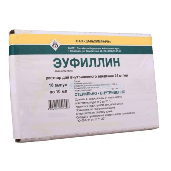 Эуфиллин амп 2,4% 5мл N10 (Дальхимфарм)