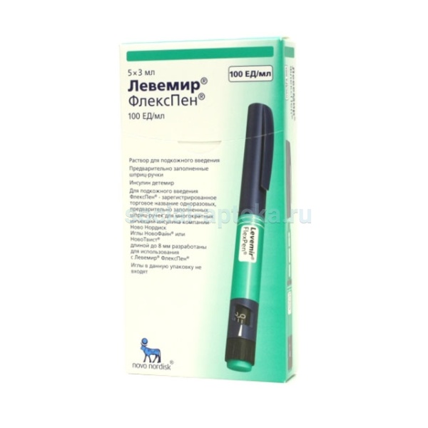 Левемир® ФлексПен® является растворимым базальным аналогом инсулина, обладающим пролонгированным действием (до 24 ч).В отличие от других препаратов инсулина, базис-болюсная терапия препаратом Левемир®ФлексПен® не приводит к увеличению массы тела.Лечение лекарственным препаратом Левемир® ФлексПен® обеспечивает меньшее увеличение массы тела по сравнению с применением изофан-инсулина и инсулина гларгин.Меньший по сравнению с изофан-инсулином риск ночной гипогликемии позволяет более интенсивно проводить титрацию дозы с целью достижения целевого показателя глюкозы крови в базис-болюсной терапии.По сравнению с другими инсулинами, в частности с изофан-инсулином, меньший риск наступления эпизодов легкой ночной гипогликемии позволяет более интенсивно проводить подбор дозы с целью достижения целевого показателя глюкозы крови при проведении лечения препаратом Левемир® ФлексПен® в комбинации с пероральными гипогликемическими препаратами.Левемир® ФлексПен® обеспечивает лучший гликемический контроль (на основании измерения концентрации глюкозы плазмы натощак) по сравнению с применением изофан-инсулина.Перед длительной поездкой, связанной со сменой часовых поясов, пациент должен проконсультироваться со своим лечащим врачом, поскольку смена часового пояса означает, что пациент должен принимать пищу и вводить инсулин в другое время.Недостаточная доза препарата или прекращение лечения, особенно при сахарном диабете типа 1, может приводить к развитию гипергликемии или диабетического кетоацидоза. Как правило, первые симптомы гипергликемии появляются постепенно, в течение нескольких часов или дней. К этим симптомам относятся жажда, учащенное мочеотделение, тошнота, рвота, сонливость, покраснение и сухость кожи, сухость во рту, потеря аппетита, запах ацетона в выдыхаемом воздухе. При сахарном диабете типа 1 без соответствующего лечения гипергликемия приводит к развитию диабетического кетоацидоза и может привести к смерти.Гипогликемия может развиться, если доза инсулина слишком высока по отношению к потребности в инсулине, при пропуске приема пищи или незапланированной интенсивной физической нагрузке. После компенсации углеводного обмена, например при интенсифицированной инсулинотерапии, у пациентов могут измениться типичные для них симптомы-предвестники гипогликемии, о чем больные должны быть проинформированы.Обычные симптомы-предвестники могут исчезать при длительном течении сахарного диабета.Сопутствующие заболевания, особенно инфекционные и сопровождающиеся лихорадкой, обычно повышают потребность организма в инсулине.Коррекция дозы препарата может также потребоваться при наличии у пациента сопутствующих заболеваний почек, печени или нарушений функции надпочечников, гипофиза или щитовидной железы.Перевод больного с других препаратов инсулина. Перевод больного на новый тип или препарат инсулина другого производителя должен происходить под строгим врачебным контролем. При изменении концентрации, производителя, типа, вида (человеческий, аналог человеческого инсулина) и/или метода его производства может потребоваться коррекция дозы. Пациенты, переходящие на лечение препаратом Левемир® ФлексПен® с другого типа инсулина, могут нуждаться в изменении дозы по сравнению с дозами ранее применявши