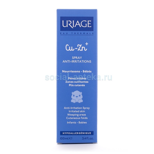 Спрей Cu-Zn Spray Uriage осуществляет специфический уход за проблемной кожей. Оказывает подсушивающее действие, сокращает площадь мокнущих участков и тяжесть их состояния, ликвидирует опрелости, моментально успокаивает раздраженную кожу.