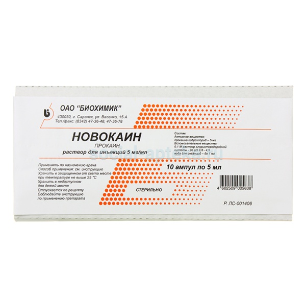 - Действующее вещество: Прокаин