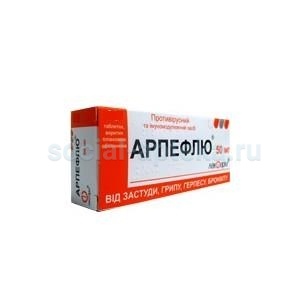 Арпефлю – противовирусный препарат для системного применения. Арпефлю содержит активный компонент арбидола гидрохлорид – лекарственное вещество, активное в отношении вирусов гриппа типа В и А, а также вирусов, которые вызывают острые респираторные инфекции. Противовирусное действие препарата обусловлено способность арбидола гидрохлорида угнетать вирусоспецифический процесс слияния липидной оболочки вирусов с мембранами клеток. Данный эффект реализуется за счет взаимодействия арбидола гидрохлорида с гемаглютинином вируса. Таким образом, препарат Арпефлю предупреждает проникновение вирусов в клетки организма.Кроме того, Арпефлю способствует увеличению продукции интерферона и повышению фагоцитарной активности макрофагов. При применении препарата Арпефлю отмечалось снижение частоты развития осложнений вирусных инфекций, сокращение периода болезни и снижение тяжести симптомов гриппа и вирусных острых респираторных заболеваний. Арпефлю относится к малотоксичным препаратам. После перорального приема арбидола гидрохлорид хорошо всасывается в пищеварительном тракте и создает максимальные концентрации в плазме крови спустя 1,2-1,5 часа. Метаболизируется арбидола гидрохлорид в печени. Экскретируется арбидол преимущественно кишечником в неизменном виде, некоторая часть выводится почками. Период полувыведения действующего вещества препарата Арпефлю достигает 17-21 часа, в течение 24 часов выводится порядка 90% принятой дозы.