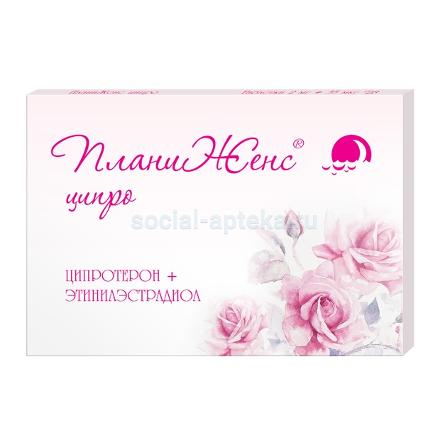 Препарат ПланиЖенс® ципро содержит прогестаген ципротерон и эстроген этинилэстрадиол и применяется на протяжении 28 дней месячного цикла. Препарат ПланиЖенс® ципро имеет состав, сходный с другими КОК.