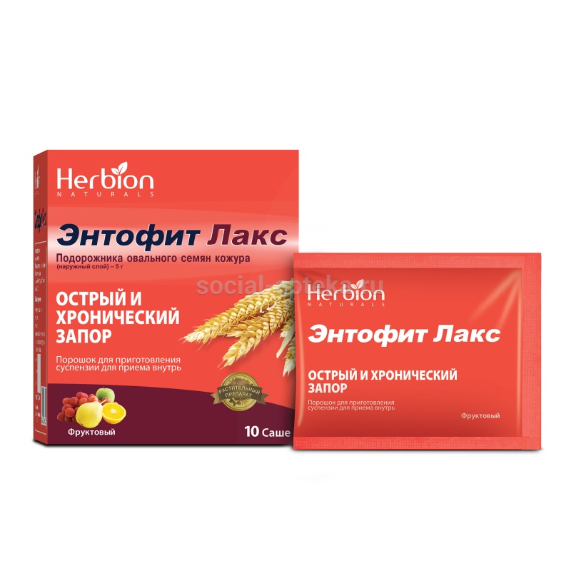 - Форма выпуска: Энтофит Лакс порошок для приготовления суспензии для приёма внутрь (фруктовый): по 5,3 г в саше из трехслойной алюминиево-полиэтиленовой фольги, по 10 саше вместе с инструкцией по применению в картонной коробке.