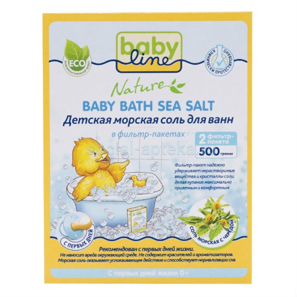 Соль для ванн Babyline морская c чередой 500 гр способствует укреплению иммунной системы и стимулирует обменные процессы в организме, регулярное применение ее является профилактикой респираторных заболеваний. Экстракт череды снимает зуд и раздражение кожи, оказывает противовоспалительное и заживляющее действие. Солевая ванна на ночь поможет успокоить ребенка и обеспечит крепкий здоровый сон. Особенности: Проверено дерматологами. Солевые ванночки увлажняют и защищают кожу, способствуют заживлению ранок. Стимулирует обмен веществ и способствует нормализации мышечного тонуса. Морская соль укрепляет иммунитет и служит отличной профилактикой респираторных заболеваний. Удобство использования, благодаря упаковке соли в фильтр-пакетики.