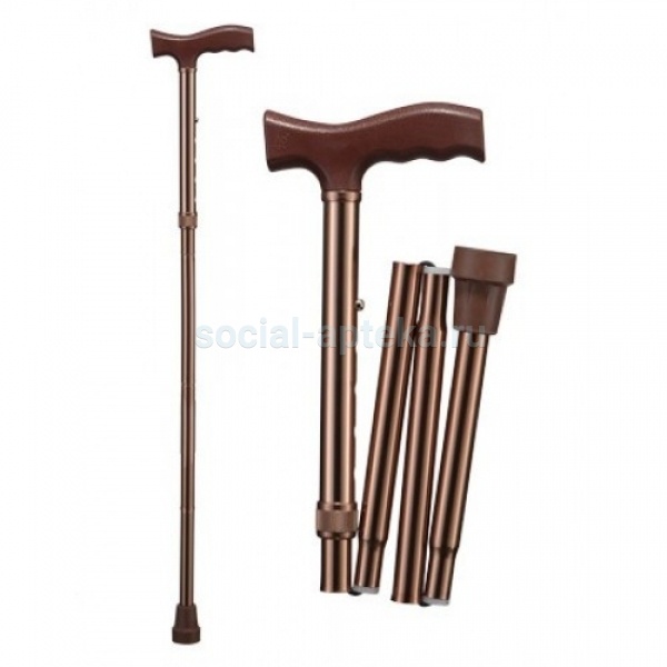 Трость собирается в 4 секции. Длина в сложенном состоянии 30 см. Компактна и удобна при хранении. Т-образная рукоятка способствует усилению функции хвата. Небольшой вес трости позволяет использовать ее в течение всего дня, не вызывая усталости в опорной руке. С помощью телескопической (выдвижной) конструкции можно оптимизировать высоту трости и подогнать ее под необходимые параметры. Резиновая насадка увеличивает сцепление с поверхностью и повышает устойчивость опоры.