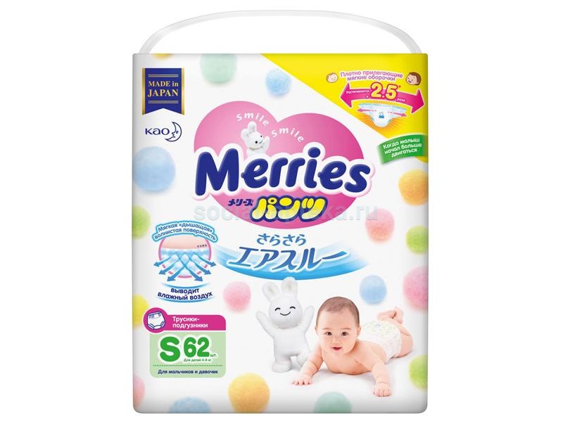 Мерриес Подгузники-трусики р-р S 4-8кг N62 (Као)