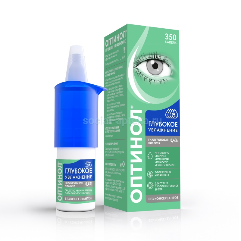 Средство увлажняющее офтальмологическое "Оптинол®" Глубокое увлажнение предназначено для интенсивного и длительного увлажнения глаз и показано к применению: