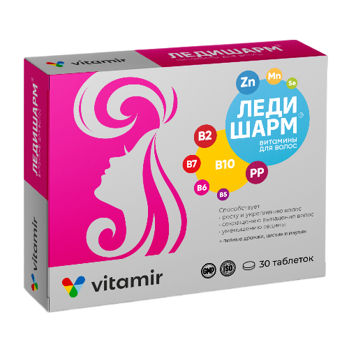 Инулин, цистин, витамин В10, дрожжи пивные сухие инактивированные, цинка цитрат, селенометионин, марганца глюконат, витамин РР/В3, Д-пантотенат кальция, витамин В6, витамин В2, витамин В7, Е470, Е551, оболочка: Е464, Е1521, Е171, оксид железа желтый (Е172), оксид железа красный (Е172).