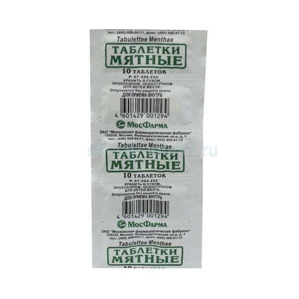Мятные таблетки - противорвотное, спазмолитическое.Раздражает холодовые рецепторы, рефлекторно вызывая расслабление гладкой мускулатуры, обладает седативной и желчегонной активностью.