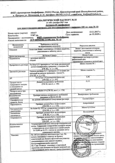 Артрадол вводят внутримышечно, по 0,1 г. через день. Перед применением содержимое ампулы растворяют в 1 мл воды для инъекций. При хорошей переносимости дозу увеличивают до 0,2 г, начиная с 4-ой инъекции. Курс лечения 25-35 инъекций. Повторный курс – через 6 месяцев. Продолжительность повторных курсов лечения устанавливается врачом.