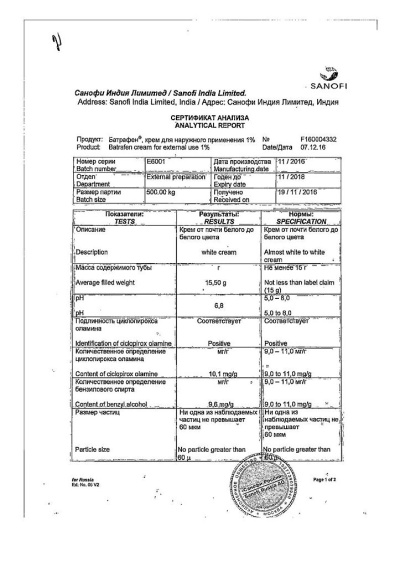Если врачом не предписано иначе, крем Батрафен наносится на пораженные области кожи два раза в день с последующим подсушиванием.Лечение должно продолжаться до исчезновения симптомов заболевания (обычно две недели).Для предотвращения рецидива заболевания рекомендуется применять препарат еще в течение 1-2 недель после исчезновения всех клинических симптомов.