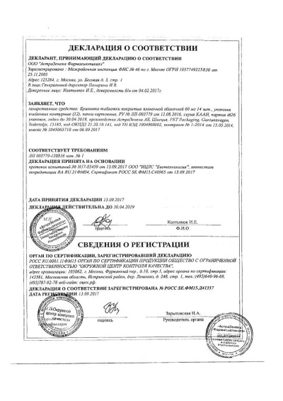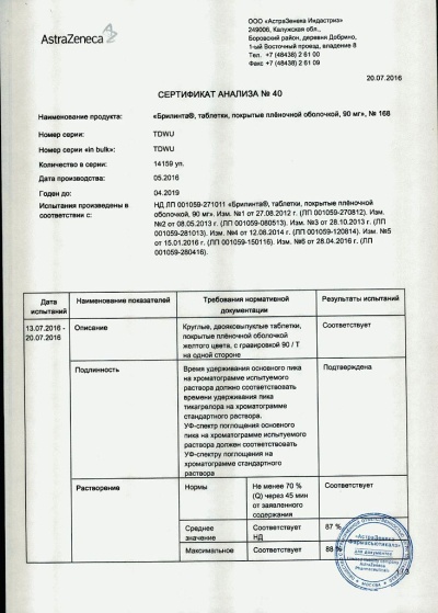 «Фармакологические свойства»). После 12 месяцев терапии пациенты, принимавшие препарат Брилинта® 90 мг два раза в сутки, могут быть переведены на прием препарата Брилинта® 60 мг два раза в сутки без перерыва в терапии.