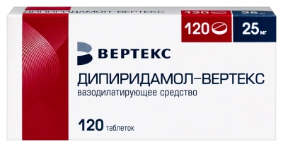 1 таблетка 25 мг Активное вещество: дипиридамол - 25,00 мг 1 таблетка 75 мг Активное вещество: дипиридамол - 75,00 мг.
