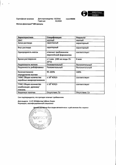 Аминогликозидные антибиотики, цисплатин и циклоспорин ускоряют выведение магния.Ионы магния, железа, фторидов и тетрациклин взаимно влияют на абсорбцию друг друга, поэтому необходимо соблюдать 2–3-часовой интервал между приемом Магний-Диаспорал 300 и препаратов, содержащих вышеперечисленные вещества.Магний ослабляет действие непрямых антикоагулянтов, снижает всасывание железа.